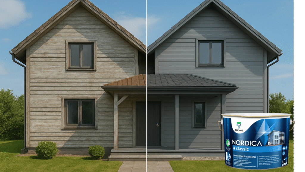 NORDICA CLASSIC pusiau matiniai, akrilato pagrindo, vandens pagrindo dažai mediniams paviršiams lauke. Fasadiniai dažai, kuriems suteikta teisė naudoti Šiaurės šalių ekologinį ženklą „Gulbė”, pasižymi NORDICA klasės patvarumu: suteikia kietą paviršių, kuris atstumia nešvarumus ir labai ilgai išlaiko savo išvaizdą bei spalvą.